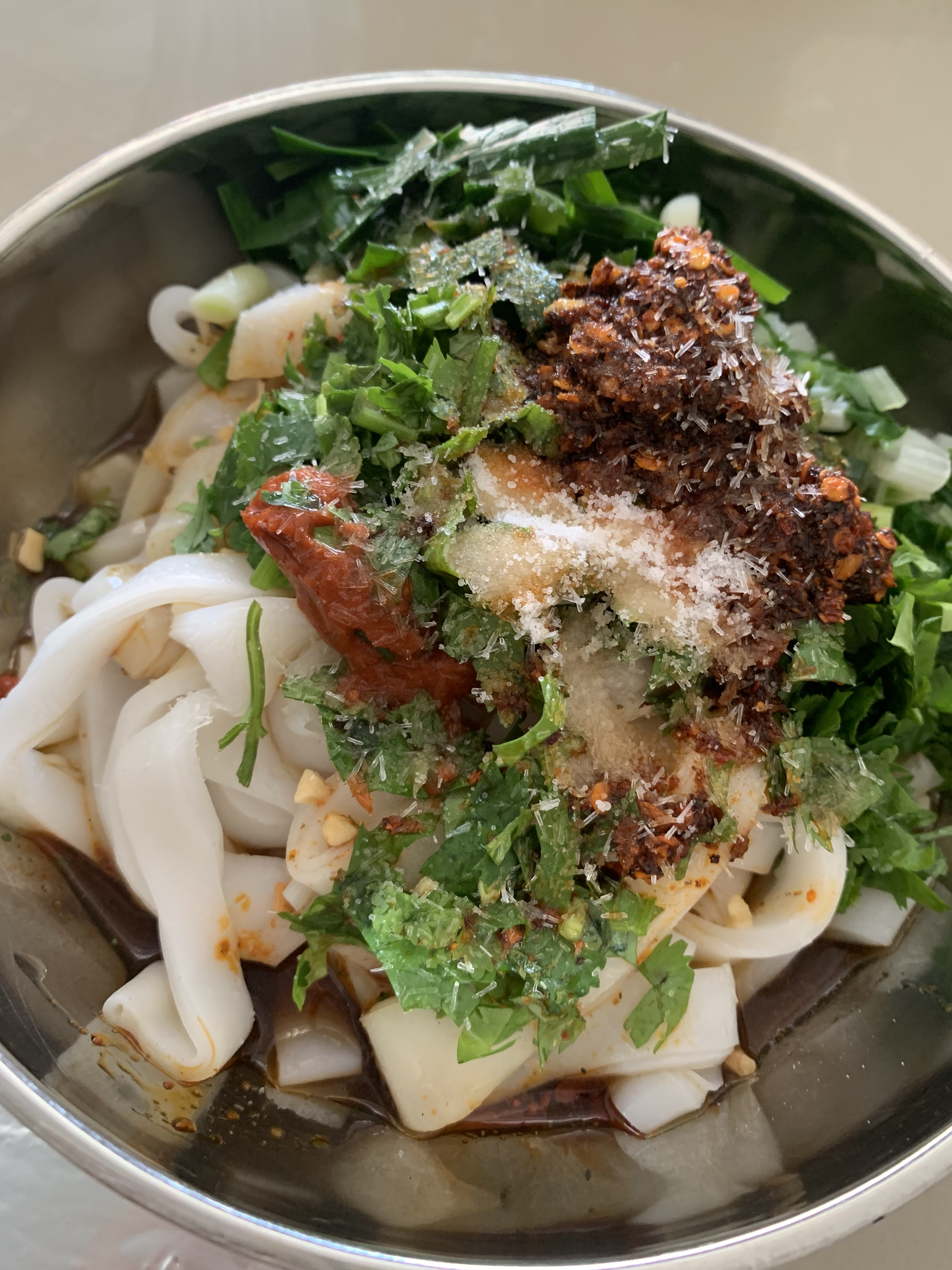 别人都在忙着回家。我先来碗水饺和炸酱面